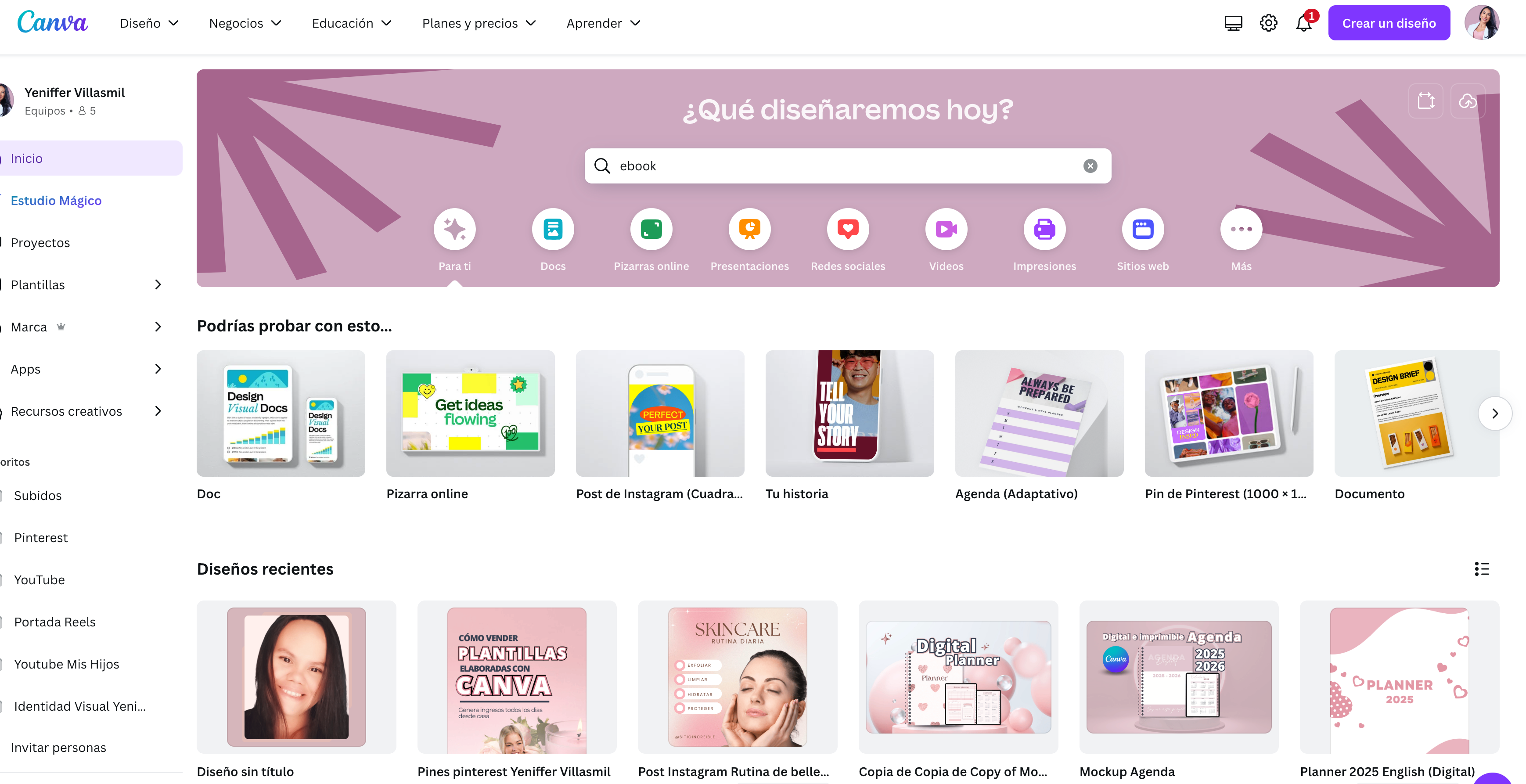 Selecciona "Crear un diseño": Escoge algo como "Presentación" o "Documento A4" o un Post para Instagram.